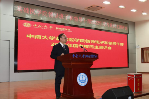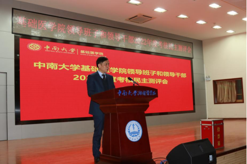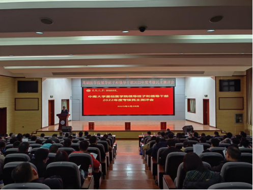 2023年2月28日中午,基础医公司在湘雅新校区图书馆一楼报告厅召开领导班子和领导干部2022年度考核民主测评会,全体院领导、中层干部及教职工共195人参加。会议由李顺长书记主持。