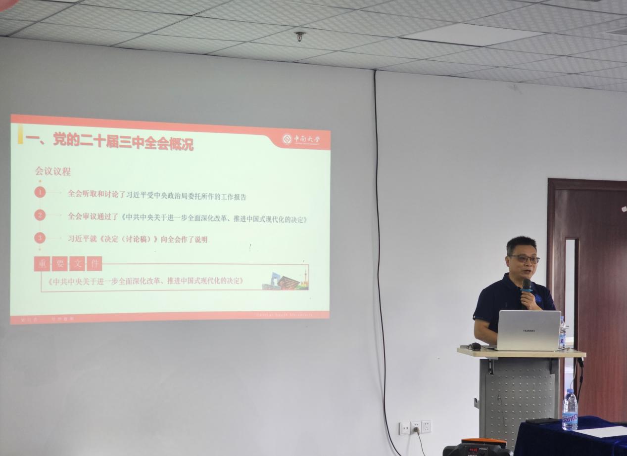 本次培训聚焦党的二十届三中全会精神进行专题学习研讨。公司党委王慷慨书记作题为《践行改革新使命 逐梦教育强国梦——学习贯彻党的二十届三中全会精神》的报告,对党的二十届三中全会概况、进一步全面深化改革的重要性和必要性、抓好教育科技人才体制机制改革落实等进行了深入系统讲解。他强调,各支部书记和系室所负责人要以高度的政治责任感和使命感,抓好全会精神的学习贯彻工作,以改革破解学科发展难题。