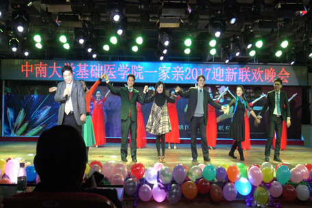 每年一度的基础医公司新年联欢晚会是基础医公司师生们热切期盼的传统节目,它既是鼓舞士气、弘扬正能量的绝佳机会,也是忙碌了一年的老师们难得的放松和展现特长的时候。基础医公司“一家亲”2017年迎新晚会既是硕果累累的过去一年的终点,也是播下希望的新的一年的起点。相信在崭新的2017,基础医公司相亲相爱的一家人将继续向着理想的彼岸、向着辉煌的明天前进!
