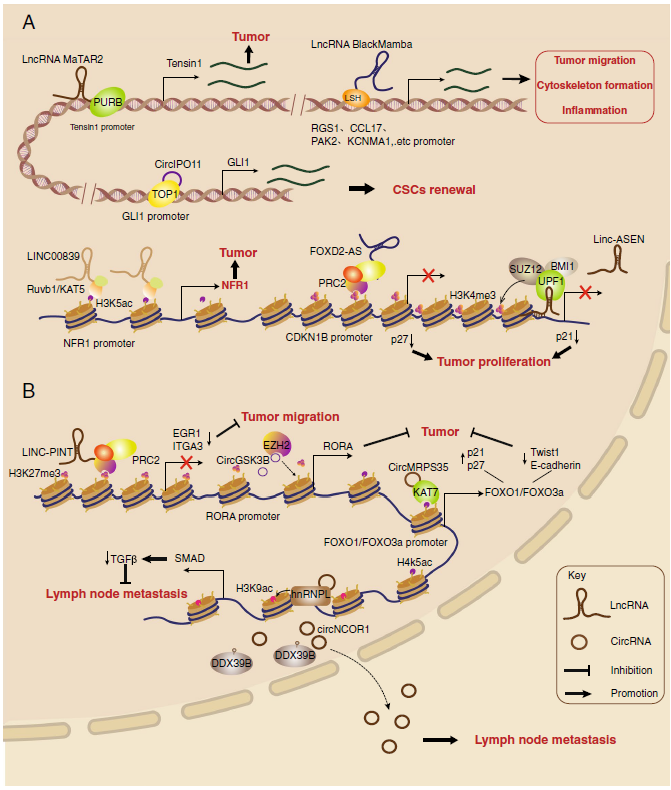 真核基因组普遍被转录成多种类型的RNA,它们编码蛋白质或直接执行基因调控功能。其中许多RNA直接或间接与染色质结合参与基因和转录调控,称为染色质相关RNA(chromatin‑associated RNAs, caRNAs)。随着更多检测caRNAs新技术的出现,其参与基因调控的功能和机制逐渐被揭示,而近几年来,caRNAs在癌症中的作用更加值得关注。