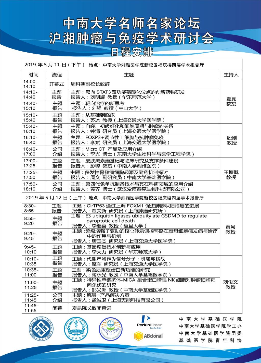 【bv伟德国际1946名师名家论坛】沪湘肿瘤与免疫学术研讨会日程安排