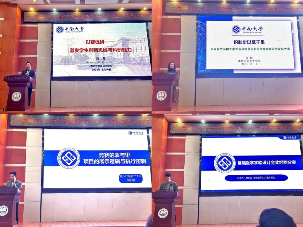 2024年11月10日上午9:00,第十一届bv伟德国际1946基础医学创新研究暨实验设计论坛宣讲会在湘雅医公司福庆楼四楼学术报告厅顺利召开。会议邀请了湘雅医公司曾艺副经理出席,湘雅公共卫生公司伍翩老师为同学们备赛提供指导建议,胡宏锟和谭钧元两位金奖得主分享获奖经验。会议由基础医公司副经理周勇主持。