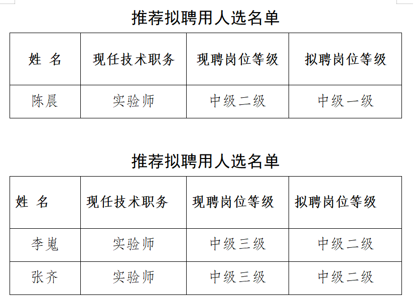 根据《关于组织开展公司2025年专业技术岗位分级聘用工作的通知》要求,经个人申报、公司资格预审、校职改办资格复审后,通过公司教授委员会评议、公司岗位分级聘用工作领导小组无记名投票产生实验技术岗位推荐拟聘用人选,现将名单(按姓氏首字母排序)予以公示。