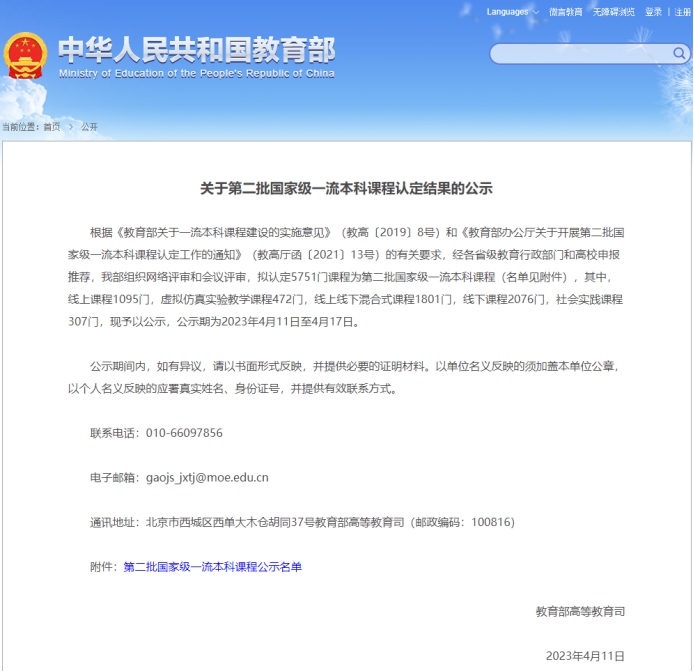 喜报:公司新增2门国家级一流本科课程