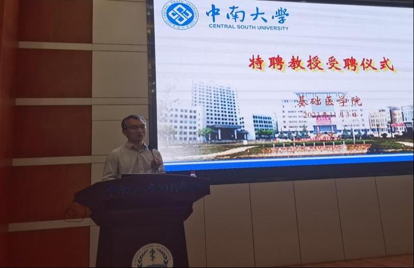 11月3日下午,基础医公司在湘雅新校区福庆楼四楼报告厅举行特聘教授聘任仪式。bv伟德国际1946湘雅医公司附属肿瘤医院(湖南省肿瘤医院)肺胃肠内科副主任、国家优秀青年基金获得者张永昌教授受聘为公司特聘教授。基础医公司原经理(现湘雅三医院经理)江泓教授、基础医公司经理熊炜教授、副经理刘俊文教授、黄河教授及公司师生代表等近120人参加聘任仪式。