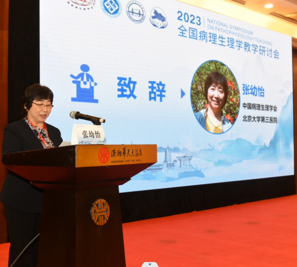 张幼怡理事长代表中国病理生理学会致辞,她指出,病理生理学是联系基础与临床的重要桥梁学科,是医学教育体系中重要组成部分,对培养优秀医学人才具有重要意义。希望通过本次教学研讨会的召开,加快推动教学改革,提升教学质量,助力我国病理生理学教育事业繁荣和发展。
