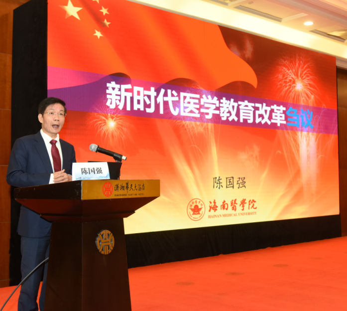 开幕式后,海南医公司经理陈国强院士和北京大学心血管研究所所长董尔丹院士开展了院士论坛。两位院士分别从“新时代医学教育改革”“医学科技创新与健康促进”两个主题高瞻远瞩地指出未来医学与医学教育发展的方向和思路。
