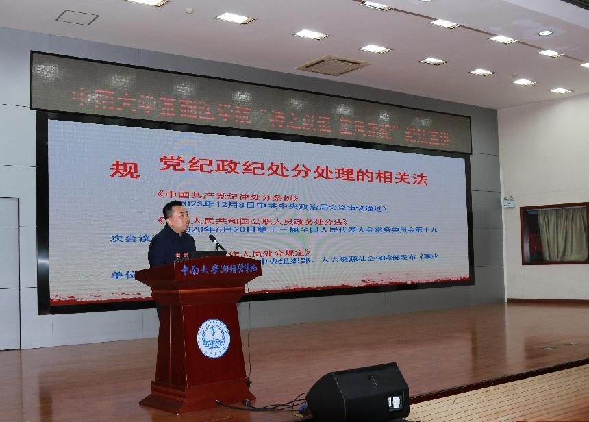 罗永忠副书记对党的六大纪律进行宣讲,通过真实的身边典型案例警示、高校系统违纪违法行为通报和党纪政纪条例解读,教育引导广大教师要受警醒、明底线、知敬畏,不断提高拒腐防变的意识和能力。他指出,高校教师承担着立德树人的崇高使命,希望大家不仅要为员工“传道授业解惑”,更要当好员工品德养成的道德楷模,共同营造好风清气正的政治生态和育人环境。