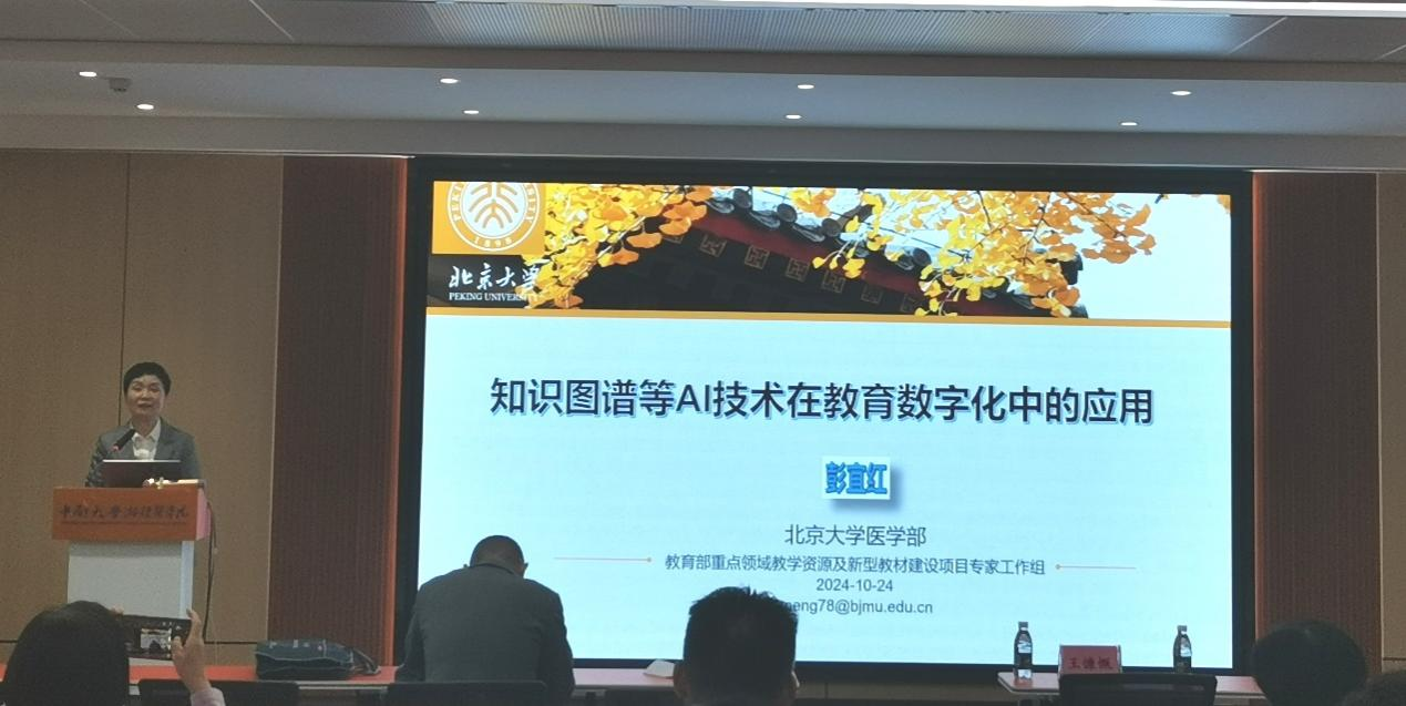 2024年10月24日,北京大学彭宜红教授应公司医学微生物学系主任刘水平教授邀请,做客公司名师名家学术论坛,在湘雅公卫公司六楼学术报告厅作题为“知识图谱等AI技术在公司产品数字化中的应用”的专题报告。活动由基础医公司党委书记王慷慨教授主持,基础医公司、公共卫生公司及生命科学公司师生踊跃参加,氛围热烈。