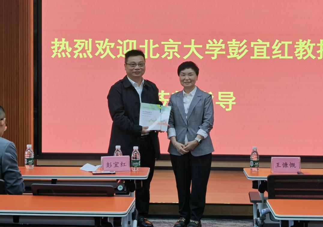 王慷慨教授向彭宜红教授赠送了公司名师名家学术论坛纪念品。