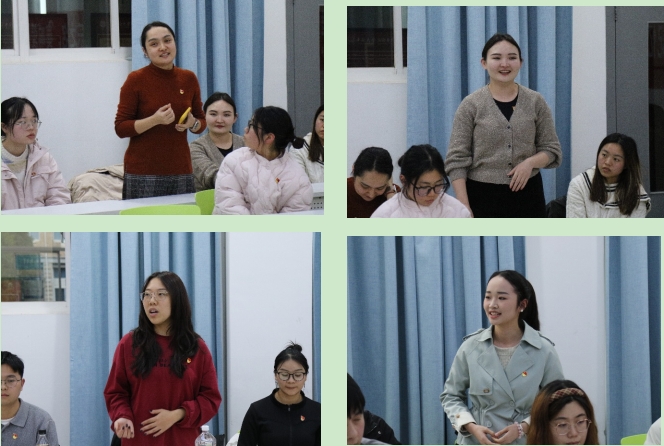 活动第二个环节是畅谈观后感。2021级博士研究生何旎涵首先分享到:“分享这部先导片的初衷非常简单,因为我深受感动。历史上的几页纸,浓缩了好几代人几辈子。在百年前的革命初期,音乐具有唤醒国民精神独立和追求的推动作用。虽然我们生于和平年代,未曾经历战争与苦难,但依然需要铭记家国情怀,弘扬爱国主义精神。”2022级本科生周宇航谈到:“家是最小国,国是千万家。无论时代如何变迁,这种情感始终不会褪色,将永远激励我们为国家繁荣、家庭幸福而努力奋斗。” 2022级博士胡尔西旦分享到:“今天从音乐角度看国家的发展,其实每个领域的先驱,包括生物医学,都为国为民做出了巨大贡献。希望与梦想永远生生不息,我们也要竭尽全力为国家的繁荣昌盛贡献力量。”博士研究生李不言提到:“现代音乐起源于中国的十二平均律,因此我们更应该坚定文化自信,弘扬中国传统文化。”随后在场的研究生和本科生党员相继发表感言。