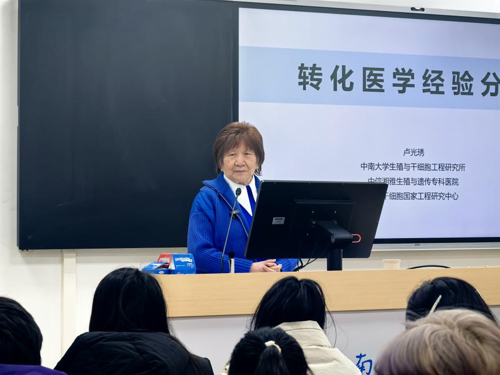 近日,我国著名生殖医学与医学遗传学家、中信湘雅生殖与遗传医院首席科学家及终身荣誉经理、86岁的卢光琇教授走上讲台,为基础医学2501班本科生带来一场题为“转化医学”的专题讲座,以自身科研经历激励员工夯实专业基础、服务人民健康。