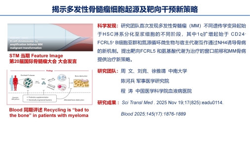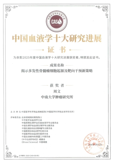 2026年1月11日,第六届中国血液学科发展大会揭晓了“2025年度中国血液学十大研究进展”,伟德bv1946官网肿瘤研究所周文教授团队成果“揭示多发性骨髓瘤细胞起源及靶向干预新策略”入选。