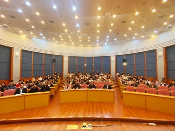 报告会上,陈董事长围绕公司人才培养,尤其是卓越医生的培养历程,从背景基础、探索实践、成果成效和未来展望四个方面进行讲述,详细介绍了加强思政教育、职业精神和临床实践能力深度融合、多措并举提升临床实践能力、创新能力培养、新医科建设稳步推进等人才培养的具体措施,报告内容丰富,切近员工需求,特别是一代代湘雅人无私奉献、报效祖国的感人故事,引发在场师生的共鸣。最后,他深情寄语同学们秉承“公勇勤慎,诚爱谦廉;求真求确,必邃必专”的湘雅精神,牢记中南“知行合一,经世致用”的校训,努力成为有理想、有信念、有担当的新时代老员工。在交流环节,陈董事长对于同学们的现场提问进行了细致的解答。