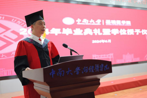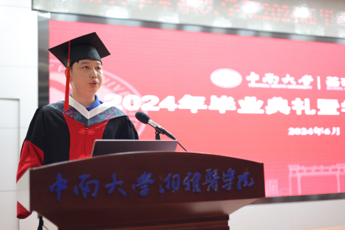 教师代表余正副教授为所有的毕业生们送上最真挚的祝福,并寄语毕业生“不忘初心,砥砺前行,坚守初心,保持对知识的渴望和对梦想的追求;勇于担当,传承湘雅精神,在面对医学难题时,不畏艰难,勇于创新,为人类的健康事业贡献自己的力量;珍惜友情,感恩遇见,在未来的日子里,无论身处何方,都要保持联系、互相支持、共同成长。”