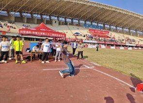 首先登场的就是我们院的标枪选手,瞧他那灵巧却又稳健的步伐,身体协调又不失冲劲,坚毅的眼神中传出自信的光芒,只看到他手指一松,却见标枪如鹰一般飞出,赢得了观众的阵阵喝彩。