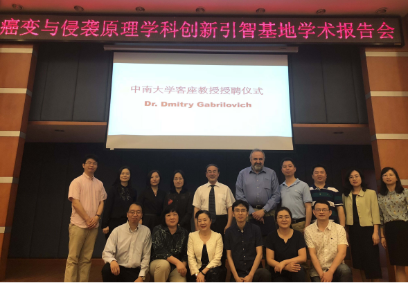 2018年5月11日,应教育部/国家外专局癌变与侵袭原理高校学科创新引智基地的邀请,美国宾夕法尼亚大学Dmitry Gabrilovich教授在湘雅医公司做学术报告,进行学术交流。引智基地负责人李桂源教授向Gabrilovich教授颁发bv伟德国际1946客座教授聘书。
