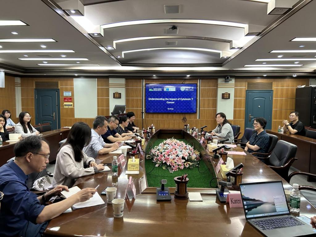 5月28日,牛津大学Ita Askonas 转化免疫学终身讲席教授、中国医学科公司牛津研究所英方所长董涛一行来院进行学术交流,双方在杏林校区孝骞楼八楼二会议室开展座谈会,公司党委书记王慷慨,经理熊炜,副经理刘俊文,研究员周文、马健、谭斯品等教授及部分员工参加交流。会议由熊炜经理主持。